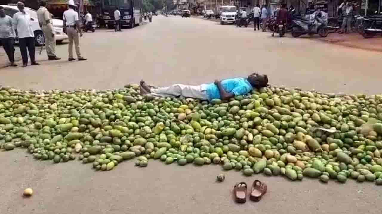 ತೋತಾಪುರಿ ಮಾವಿಗೆ ಬೆಂಬಲ ಬೆಲೆ ನೀಡುವಂತೆ ಬುಧವಾರ (ಜೂ.11) ಕೋಲಾರದಲ್ಲಿ ರೈತರು ಹಣ್ಣುಗಳನ್ನು ರಸ್ತೆಗೆ ಸುರಿದು ಪ್ರತಿಭಟನೆ ನಡೆಸಿದರು. ತೋತಾಪುರಿ ಮಾವು ಬೆಲೆ ಕುಸಿತಗೊಂಡಿದ್ದರಿಂದ ನೊಂದ ಬೆಳೆಗಾರರು ಶ್ರೀನಿವಾಸಪುರ ಬಂದ್ಗೆ ಕರೆ ನೀಡಿ, ಧರಣಿ ನಡೆಸಿದರು. ಒಂದು ಕೆಜಿ ತೋತಾಪುರಿ ಮಾವಿಗೆ ನಾಲ್ಕು ರೂ. ಬೆಂಬಲ ಬೆಲೆ ನೀಡುವಂತೆ ಒತ್ತಾಯಿಸಿದರು. ತೋತಾಪುರಿ ಮಾವು ಬೆಳಗಾರರ ಪ್ರತಿಭಟನೆಗೆ ರಾಜ್ಯ ಸರ್ಕಾರ ಮಣಿದಿದೆ.