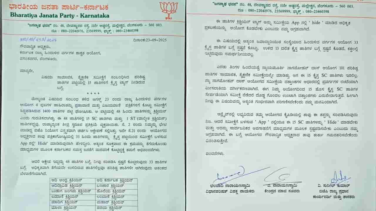 ಬೆಂಗಳೂರು, (ಸೆಪ್ಟೆಂಬರ್ 23): ಕರ್ನಾಟಕದಲ್ಲಿ ಜಾತಿ ಗಣತಿ ಸಮೀಕ್ಷೆ (Karnataka caste census) ಈಗಾಗಲೇ ಆರಂಭಗೊಂಡಿದೆ. ಆದರೆ ಜಾತಿ ಗಣತಿಯಲ್ಲಿ ಹಿಂದೂ ಜಾತಿಗಳ ಮುಂದೆ ಕ್ರಿಶ್ಚಿಯನ್ ಎಂಬ ಉಲ್ಲೇಖಕ್ಕೆ ವಿಪಕ್ಷಗಳು ಆಕ್ರೋಶ ವ್ಯಕ್ತಪಡಿಸಿದ್ದವು. ಈ ನಿಟ್ಟಿನಲ್ಲಿ 48 ಹಿಂದು ಜಾತಿಗಳನ್ನು ಕ್ರಿಶ್ಚಿಯನ್ ಎಂದು ನಮೂದಿಸಿದ್ದನ್ನು ಕೈಬಿಡಲಾಗಿತ್ತು. ಇದೇ ಸಂದರ್ಭದಲ್ಲಿ ರಾಜ್ಯ ಬಿಜೆಪಿ ನಾಯಕರ ನಿಯೋಗ ಶಾಶ್ವತ ಹಿಂದುಳಿದ ವರ್ಗಗಳ ಆಯೋಗದ ಅಧ್ಯಕ್ಷ ಮಧುಸೂಧನ್ ನಾಯ್ಕ್ ಅವರನ್ನು ಭೇಟಿ ಮಾಡಿ ಈ ಬಗ್ಗೆ ಅಧಿಕೃತ ಪ್ರಕಟಣೆ ಹೊರಡಿಸುವಂತೆ ಆಗ್ರಹಿಸಿದೆ.