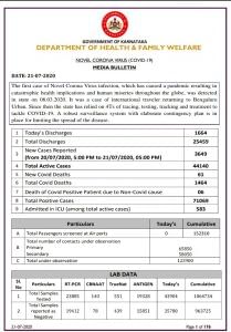 ಈ ನಡುವೆ ರಾಜ್ಯ ಸರ್ಕಾರ ಎಂದಿನಂತೆ ಹೆಲ್ತ್ ಬುಲೆಟಿನ್ ಬಿಡುಗಡೆ ಮಾಡಿದೆ. ಹಾಗಾದ್ರೆ ಬನ್ನಿ ನೋಡೋಣ ರಾಜ್ಯದ ಕೊರೊನಾ ಅಂಕಿ-ಅಂಶ ಹೇಗಿದೆ ಎಂದು.