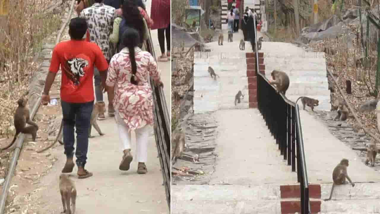 ಬಿಸಿಲ ಬೇಗೆ ಬರಗಾಲ ಇಲ್ಲಿನ ಪ್ರಾಣಿಗಳಿಗೆ ಕುಡಿಯಲು ನೀರಿಲ್ಲದೆ, ತಿನ್ನಲು ಅನ್ನವಿಲ್ಲದೆ ಹಸಿವೆಯಿಂದ ಸಾಯುವ ಸ್ಥಿತಿ ತಲುಪಿವೆ. ಪರಿಣಾಮ ಅನ್ನ, ನೀರು ಸಿಗದೆ ಕೆಲವು ಅಸ್ವಸ್ಥವಾಗಿದ್ದರೆ ಮತ್ತೆ ಕೆಲವು ಪ್ರವಾಸಿಗರ ಮೇಲೆ ದಾಳಿ ಮಾಡಿ ಅವರ ಬಳಿ ಇರುವ ಬ್ಯಾಗ್ಗಳನ್ನ ಕಸಿದುಕೊಳ್ಳುತ್ತಿವೆ. ಈಗಾಗಲೆ 15ಕ್ಕೂ ಹೆಚ್ಚು ಜನರನ್ನ ತೀವ್ರವಾಗಿ ಕಚ್ಚಿ ಗಾಯಗೊಳಿಸಿರುವ ವಾನರ ಸೇನೆ ಮಾತ್ರ ಕ್ರೂರಿಗಳಂತೆ ವರ್ತಿಸಲು ಆರಂಭಿಸಿವೆ. ವ್ಯಾಪಾರ ಮಾಡುವ ಮಹಿಳೆ ಅಶ್ವಿನಿ, ಪ್ರವಾಸಿಗರಾದ ಭವ್ಯ, ಸಂದ್ಯ ಹಾಗೂ ಮಿತ್ರ ಶ್ರೀನಾಥ್ ಎಂಬುವವರ ಮೇಲೆ ದಾಳಿ ಮಾಡಿವೆ.