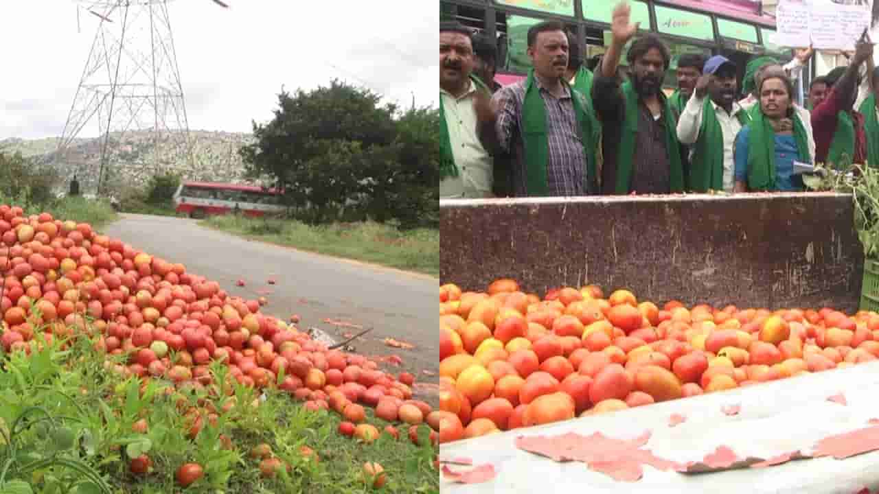ಇನ್ನು, ಕೆಲವು ರೈತರು ಟೊಮೆಟೊ ಅನ್ನು ರಸ್ತೆ ಬದಿಯಲ್ಲಿ ಸುರಿದು ಹೋಗುವ ಸ್ಥಿತಿ ನಿರ್ಮಾಣವಾಗಿದೆ. ಹೀಗಾಗಿ, ಸರ್ಕಾರ ಟೊಮೆಟೊ ಬೆಳೆದ ರೈತರಿಗೆ ಕೆಜಿಗೆ ಕನಿಷ್ಠ ಹತ್ತು ರೂಪಾಯಿ ಬೆಂಬಲ ಬೆಲೆ ನಿಗದಿಪಡಿಸಬೇಕು ಎಂದು ಆಗ್ರಹಿಸಿ ರೈತ ಸಂಘದಿಂದ ಪ್ರತಿಭಟನೆ ಮಾಡಿ ಆಗ್ರಹಿಸಿದೆ.
