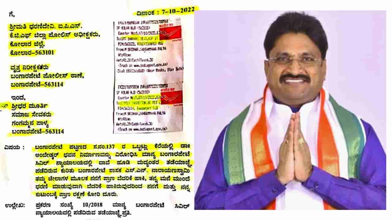 ಇದರಿಂದ ಆಕ್ರೋಶಗೊಂಡಿರುವ ಶಾಸಕರ ಬೆಂಬಲಿಗರಾದ ಸೂಲಿಕುಂಟೆ ರಮೇಶ, ಹುಣಸಹಳ್ಳಿ ವೆಂಕಟೇಶ, ಮಣಿವಣ್ಣನ್, ಚಿಕ್ಕನಾರಾಯಣ ತಮ್ಮ ಮನೆಯ ಮುಂದೆ ಧರಣಿ ಮಾಡುವುದಾಗಿ ಬೆದರಿಕೆ ಹಾಕಿದ್ದಾರೆ. ಅಲ್ಲದೆ ಅಕ್ಟೋಬರ್ 19ರೊಳಗೆ ಪ್ರಕರಣ ಇತ್ಯರ್ಥವಾಗದಿದ್ದಲ್ಲಿ, ಬಂಗಾರಪೇಟೆ ಬಂದ್ ಮಾಡುವ ಧಮಕಿ ಹಾಕಿದ್ದಾರೆ. ಹಾಗಾಗಿ ನನಗೆ ಮತ್ತು ನನ್ನ ಕುಟುಂಬಕ್ಕೆ ಸೂಕ್ತ ರಕ್ಷಣೆ ಒದಗಿಸಬೇಕೆಂದು ಎಸ್ಪಿ ಅವರಿಗೆ ದೂರಿನಲ್ಲಿ ಶ್ರೀಧರ್ ಮನವಿ ಮಾಡಿಕೊಂಡಿದ್ದಾರೆ ವರದಿ- ರಾಜೇಂದ್ರ ಸಿಂಹ