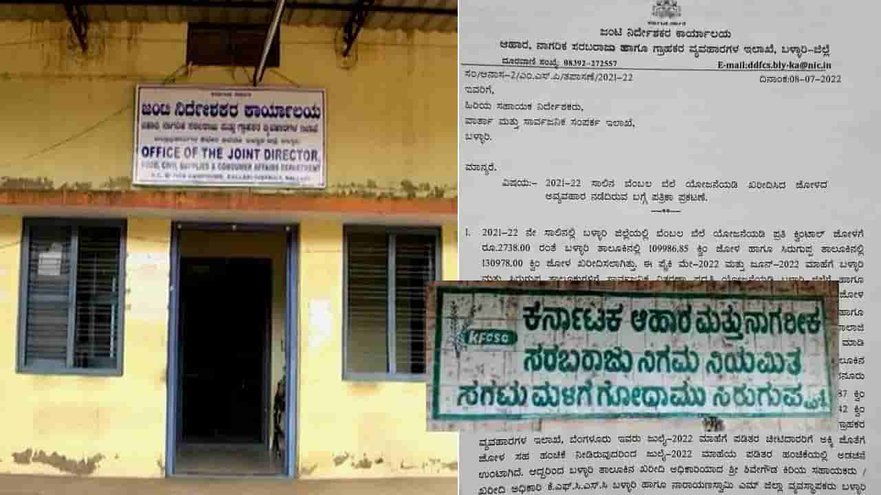 ಬಳ್ಳಾರಿ: 2021-22ನೇ ಸಾಲಿನ ಬೆಂಬಲ ಬೆಲೆ ಯೋಜನೆ ಅಡಿ ಖರೀದಿಸಿ (KFCSC) ಗೋದಾಮುಗಳಲ್ಲಿ ದಾಸ್ತಾನಿರಿಸಲಾಗಿದ್ದ ಜೋಳದಲ್ಲಿ ಅವ್ಯವಹಾರ ನಡೆದಿರುವುದು ಕಂಡು ಬಂದಿದೆ. ಇದರಿಂದ ಜಿಲ್ಲೆಯಲ್ಲಿ ಪಡಿತರ ಹಂಚಿಕೆಯಲ್ಲಿ ಆಡಚಣೆ ಉಂಟಾಗಿದೆ. ಈ ಹಿನ್ನೆಲೆಯಲ್ಲಿ ಕೆಎಫ್ಸಿಎಸ್ಸಿ (Karnataka Food & Civil Supplies Corporation Ltd) ಅಧಿಕಾರಿಗಳ ವಿರುದ್ಧ ಬಳ್ಳಾರಿ ಮತ್ತು ಸಿರಗುಪ್ಪ ಪೊಲೀಸ್ ಠಾಣೆಗಳಲ್ಲಿ ಪ್ರತ್ಯೇಕ ಪ್ರಕರಣಗಳು (FIR) ದಾಖಲಾಗಿವೆ.