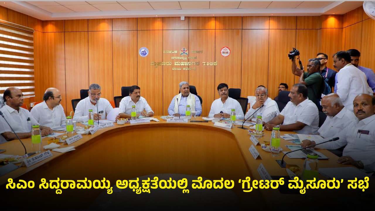 ಮೈಸೂರು ಮಹಾನಗರ ಪಾಲಿಕೆ ಕಚೇರಿಯಲ್ಲಿ ಸಿಎಂ ಸಿದ್ದರಾಮಯ್ಯ ಅಧ್ಯಕ್ಷತೆಯಲ್ಲಿ ಇಂದು "ಗ್ರೇಟರ್ ಮೈಸೂರು" ಸಭೆ ನಡೆಸಿ, ಅಭಿವೃದ್ಧಿ ಯೋಜನೆಗಳ ಕುರಿತು ಚರ್ಚೆ ಮಾಡಲಾಗಿದೆ. ಸಿಎಂ ಸಿದ್ದರಾಮಯ್ಯ ಅಧಿಕಾರಿಗಳಿಗೆ ನೀಡಿರುವ ಸೂಚನೆಗಳೇನು, ಸಭೆಯಲ್ಲಿ ಯಾವೆಲ್ಲಾ ವಿಚಾರಗಳ ಕುರಿತಾಗಿ ಚರ್ಚೆ ಮಾಡಲಾಗಿದೆ ಎಂಬ ಸಂಪೂರ್ಣ ಮಾಹಿತಿ ಇಲ್ಲಿದೆ.