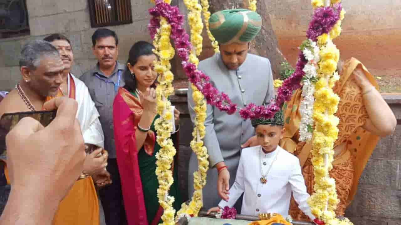 ಮೈಸೂರು, ಫೆಬ್ರವರಿ 24: ನವರಾತ್ರಿಯ ಈ ಸಮಯದಲ್ಲಿ ರಾಜರ ಕುಟುಂಬದಲ್ಲಿ ಇಂದು ಸಂಭ್ರಮದ ವಾತಾವಣವಿತ್ತು. ಇದಕ್ಕೆ ಕಾರಣ ಯದುವೀರ್ ಕೃಷ್ಣದತ್ತ ಚಾಮರಾಜ ಒಡೆಯರ್ ಮತ್ತು ತ್ರಿಷಿಕಾ ಕುಮಾರಿ ದೇವಿ ಅವರ ಎರಡನೇ ಗಂಡು ಮಗುವಿನ ನಾಮಕರಣ (naming ceremony). ಸಂಸದ ಯದುವೀರ್ ಎರಡನೇ ಮಗುವಿಗೆ ಯುಗಾಧ್ಯಕ್ಷ ಕೃಷ್ಣರಾಜ ಒಡೆಯರ್ ಎಂದು ಶಾಸ್ತ್ರೋಕ್ತವಾಗಿ ನಾಮಕರಣ ಮಾಡಲಾಗಿದೆ. ಮೊದಲ ಮಗುವಿಗೆ ಆಧ್ಯವೀರ ಕೃಷ್ಣದತ್ತ ಚಾಮರಾಜ ಒಡೆಯರ್ ಎಂದು ನಾಮಕರಣ ಮಾಡಿದ್ದಾರೆ.