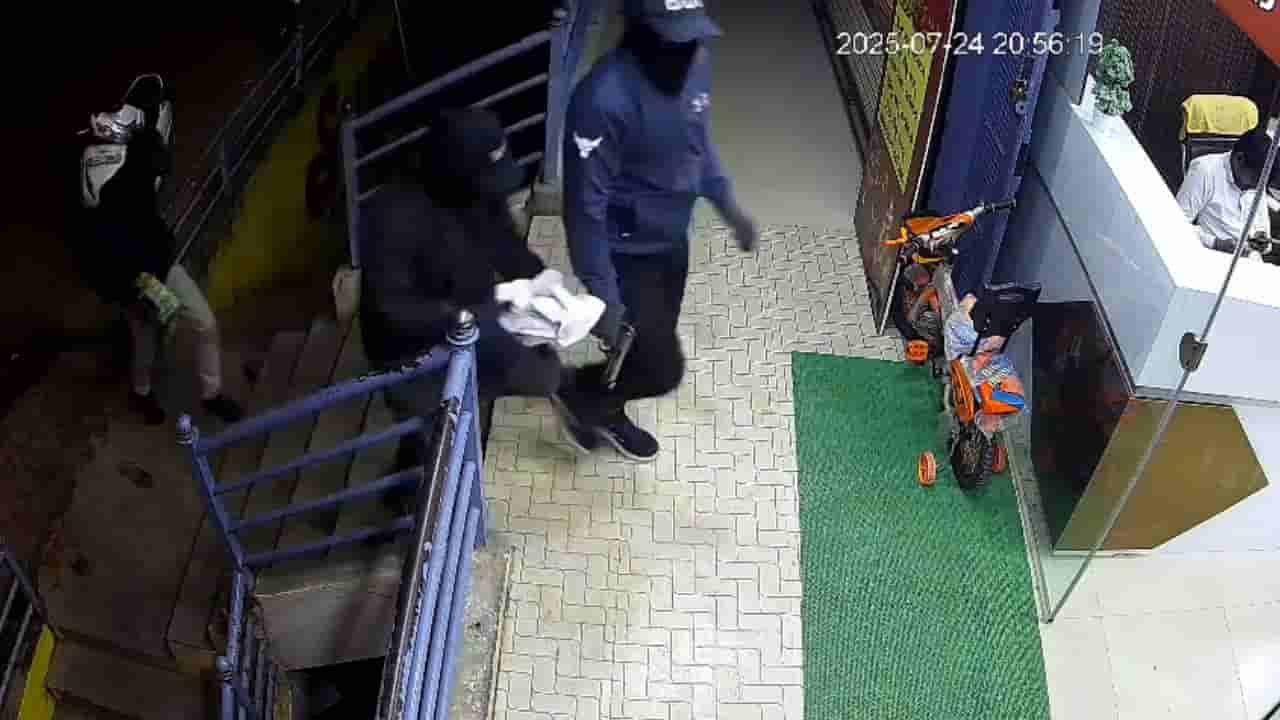ನೆಲಮಂಗಲದ ಮಾಚೋಹಳ್ಳಿ ಗೇಟ್ ಬಳಿ ಇರುವ ರಾಮ್ ಜ್ಯುವೆಲ್ಲರ್ಸ್ನಲ್ಲಿ ಬಂದೂಕುಧಾರಿಗಳು ಚಿನ್ನದ ದರೋಡೆ ಮಾಡಿದ್ದಾರೆ. ಮುಖಮಾಸ್ಕ್ ಧರಿಸಿದ ದರೋಡೆಕೋರರು ಅಂಗಡಿ ಮಾಲೀಕರನ್ನು ಬೆದರಿಸಿ ಚಿನ್ನಾಭರಣ ದೋಚಿ ಪರಾರಿಯಾಗಿದ್ದಾರೆ. ಈ ಘಟನೆಯ ಸಿಸಿಟಿವಿ ದೃಶ್ಯಗಳು ಪೊಲೀಸರಿಗೆ ಸಿಕ್ಕಿವೆ. ಮಾದನಾಯಕನಹಳ್ಳಿ ಪೊಲೀಸ್ ಠಾಣೆಯಲ್ಲಿ ಪ್ರಕರಣ ದಾಖಲಾಗಿದ್ದು, ತನಿಖೆ ನಡೆಯುತ್ತಿದೆ.