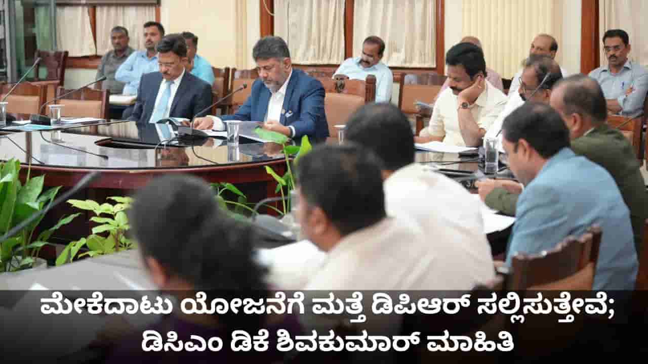 ಬೆಂಗಳೂರು, ನವೆಂಬರ್ 18: ಮೇಕೆದಾಟು ಯೋಜನೆ ಕುರಿತಾದ ಸುಪ್ರೀಂ ಕೋರ್ಟ್ ಆದೇಶದ ಹಿನ್ನೆಲೆಯಲ್ಲಿ ಮೇಕೆದಾಟು ಯೋಜನೆಗೆ ಕೇಂದ್ರ ಸರಕಾರಕ್ಕೆ ಹೊಸದಾಗಿ ಡಿಪಿಆರ್ (ವಿವರವಾದ ಯೋಜನಾ ವರದಿ) ಸಲ್ಲಿಸುತ್ತೇವೆ ಎಂದು ಉಪಮುಖ್ಯಮಂತ್ರಿ ಡಿ.ಕೆ ಶಿವಕುಮಾರ್ (DK Shivakumar) ಮಾಹಿತಿ ನೀಡಿದ್ದಾರೆ. ಇಂದು ವಿಧಾನಸೌಧದಲ್ಲಿ ನಡೆದ ಮೇಕೆದಾಟು ಯೋಜನೆ ಅನುಷ್ಠಾನ ಕುರಿತಾದ ಅಧಿಕಾರಿಗಳ ಸಭೆ ಹಾಗೂ ಕಾವೇರಿ ನೀರಾವರಿ ನಿಗಮದ ನಿರ್ದೇಶಕರ ಮಂಡಳಿಯ ಮಹತ್ವದ ಸಭೆ ನಡೆಸಿದ ಬಳಿಕ ಮಾಹಿತಿ ನೀಡಿದ್ದಾರೆ.