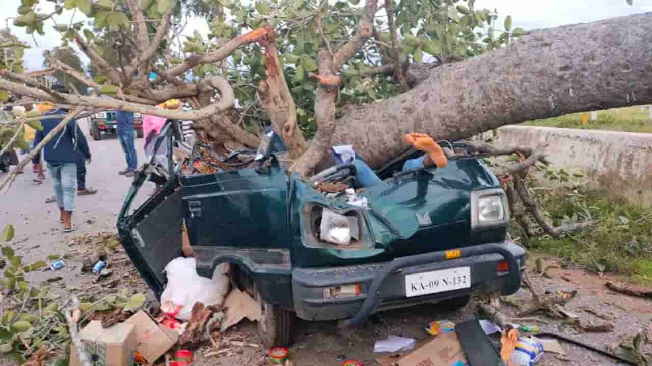 ರಾಜು ಯಳಂದೂರಿನಲ್ಲಿ ಹೋಲ್ಸೇಲ್ ಅಂಗಡಿ ನಡೆಸುತ್ತಿದ್ದರು. ಮರ ಬಿದ್ದ ರಭಸಕ್ಕೆ ಓಮ್ನಿ ವ್ಯಾನ್ ಸಂಪೂರ್ಣ ನಜ್ಜುಗುಜ್ಜಾಗಿದೆ. ಕಳೆದೆರಡು ದಿನದಿಂದ ಒಂದೇ ಸಮನೆ ಮಳೆಯಾಗುತ್ತಿದ್ದು ಮರ ನೀರಿಗೆ ನೆನೆದಿತ್ತು. ಹಳೆ ಮರವಾಗಿದ್ದರಿಂದ ಇಂದು ಬಿದ್ದುಹೋಗಿದೆ. ಕುದೇರು ಕಡೆಯಿಂದ ಬರುತ್ತಿದ್ದ ಮಾರುತಿ ಒಮ್ನಿ ಕಾರಿನ ಮೇಲೆ ಆಲದ ಮರ ಉರುಳಿಬಿದ್ದಿದೆ. ಸಂತೇಮರಹಳ್ಳಿ ಪೊಲೀಸ್ ಠಾಣಾ ವ್ಯಾಪ್ತಿಯಲ್ಲಿ ಪ್ರಕರಣ ನಡೆದಿದೆ. ಹತ್ತಾರು ವರ್ಷ ಬಾಳಿದ್ದ ಮರ ಒಂದೆರಡು ಕ್ಷಣ ತಡವಾಗಿ ಬಿದ್ದಿದ್ದರೆ… ಬಹುಶಃ ಅಪ್ಪ-ಮಗ ಬದುಕುಳಿಯುತ್ತಿದ್ದರಾ? ಆದರೆ ವಿಧಿ ಬರಹ ಹೀಗಿತ್ತು.