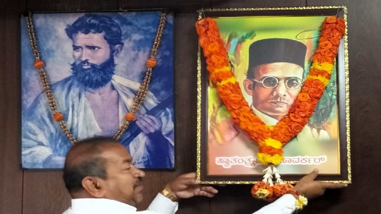 ಶಿವಮೊಗ್ಗ ಪಾಲಿಕೆಯಲ್ಲಿ ವೀರ್ ಸಾವರ್ಕರ್ ಫೋಟೋ ಇಟ್ಟು, ಪುಷ್ಪನಮನ ಸಲ್ಲಿಸಿದ ಜಿಲ್ಲಾ ಬಿಜೆಪಿ ಮುಖಂಡರು