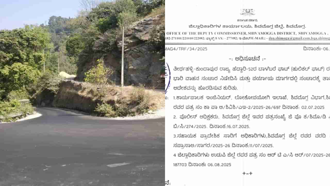 ಪ್ರಸ್ತಾವನೆಯಂತೆ ಶಿವಮೊಗ್ಗ ಜಿಲ್ಲೆ ಪೊಲೀಸ್ ಅಧಿಕ್ಷಕರು, ಸಹಾಯಕ ಪ್ರಾದೇಶಿಕ ಸಾರಿಗೆ ಅಧಿಕಾರಿಗಳು, ಶಿವಮೊಗ್ಗ ಜಿಲ್ಲೆ ಮತ್ತು ಜಿಲ್ಲಾಧಿಕಾರಿಗಳು, ಉಡುಪಿ ಜಿಲ್ಲೆ ಇವರ ಉಲ್ಲೇಖ (2) (3) (4) ವರದಿಗಳನ್ವಯ, SH-52 ರ ಬಾಳೆಬರೆ ಘಾಟ್ ನಲ್ಲಿ ಮಳೆ ಚುರುಕುಗೊಂಡಿರುವುದರಿಂದ ಮಣ್ಣು ಮತ್ತೆ ಕುಸಿಯುವ ಸಂಭವವಿರುವುದರಿಂದ ಭಾರಿ ವಾಹನಗಳ ಸಂಚಾರ ನಿಷೇದ ಮಾಡಿ ಪರ್ಯಾಯ ಮಾರ್ಗಗಳಲ್ಲಿ ಸಂಚರಿಸಬಹುದಾಗಿ ವರದಿ ಸಲ್ಲಿಸಿರುತ್ತಾರೆ ಎಂದು ಜಿಲ್ಲಾಧಿಕಾರಿಗಳು ಆದೇಶಲ್ಲಿ ಉಲ್ಲೇಖಿಸಿದ್ದಾರೆ.