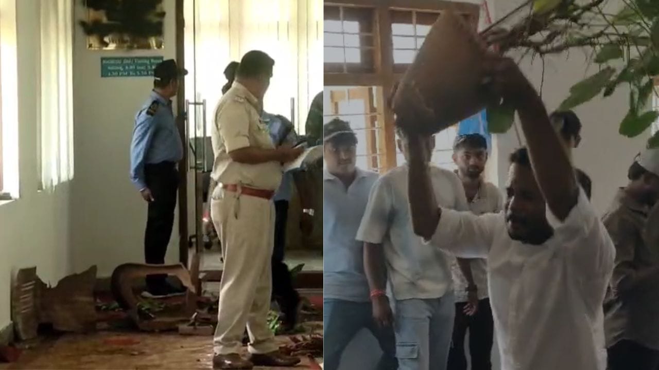 ರಣಾಂಗಣವಾದ ಕುವೆಂಪು ವಿಶ್ವವಿದ್ಯಾಲಯದ ಆವರಣ: ಕುಲಪತಿ ಕಚೇರಿಯ ಕುರ್ಚಿ, ಪಾಟ್ಗಳು ಧ್ವಂಸ