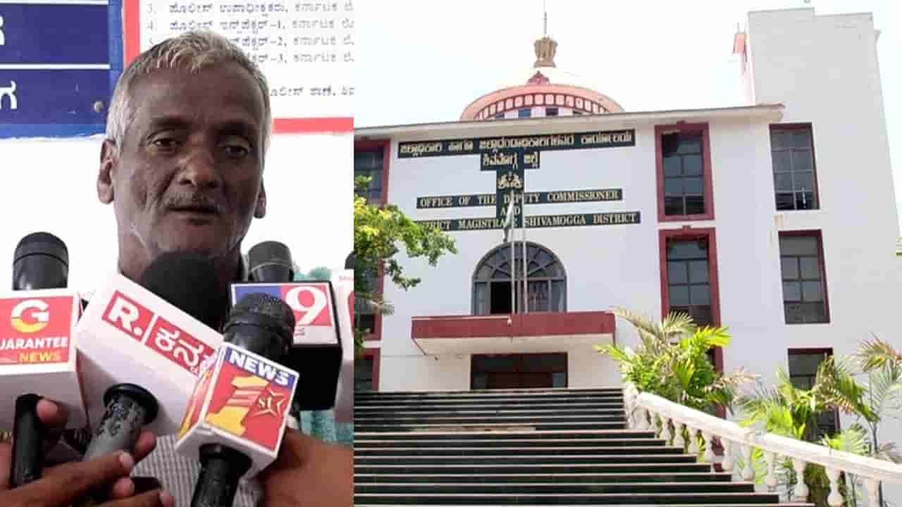 ಶಿವಮೊಗ್ಗ, ಡಿಸೆಂಬರ್ 05: ಜಮೀನು (land) ಸ್ವಾಧೀನ ಪಡಿಸಿಕೊಂಡು ಪರಿಹಾರ ನೀಡದ ಜಿಲ್ಲಾಡಳಿತದ ವಿರುದ್ಧ ರೈತನೊಬ್ಬ (farmer) ಆದೇಶ ತಂದಿದ್ದಾನೆ. ಜಿಲ್ಲಾಧಿಕಾರಿ ಕಾರು ಹಾಗೂ ಕಚೇರಿಯ ಪೀಠೋಪಕರಣ ಜಪ್ತಿ ಮಾಡುವಂತೆ ನ್ಯಾಯಾಲಯ ಆದೇಶ ನೀಡಿದ್ದು, ನ್ಯಾಯಾಲಯದ ಆದೇಶದ ಪ್ರತಿ ಹಿಡಿದು ಡಿಸಿ ಕಚೇರಿಗೆ ಬಂದ ರೈತ, ನನ್ನ ಜಮೀನಿನ 95 ಲಕ್ಷ ರೂ. ಪರಿಹಾರ ಕೊಡಿ, ಇಲ್ಲವೇ ಕಾರು ಕೊಡಿ ಅಂತಾ ಪಟ್ಟು ಹಿಡಿದ್ದಾರೆ.