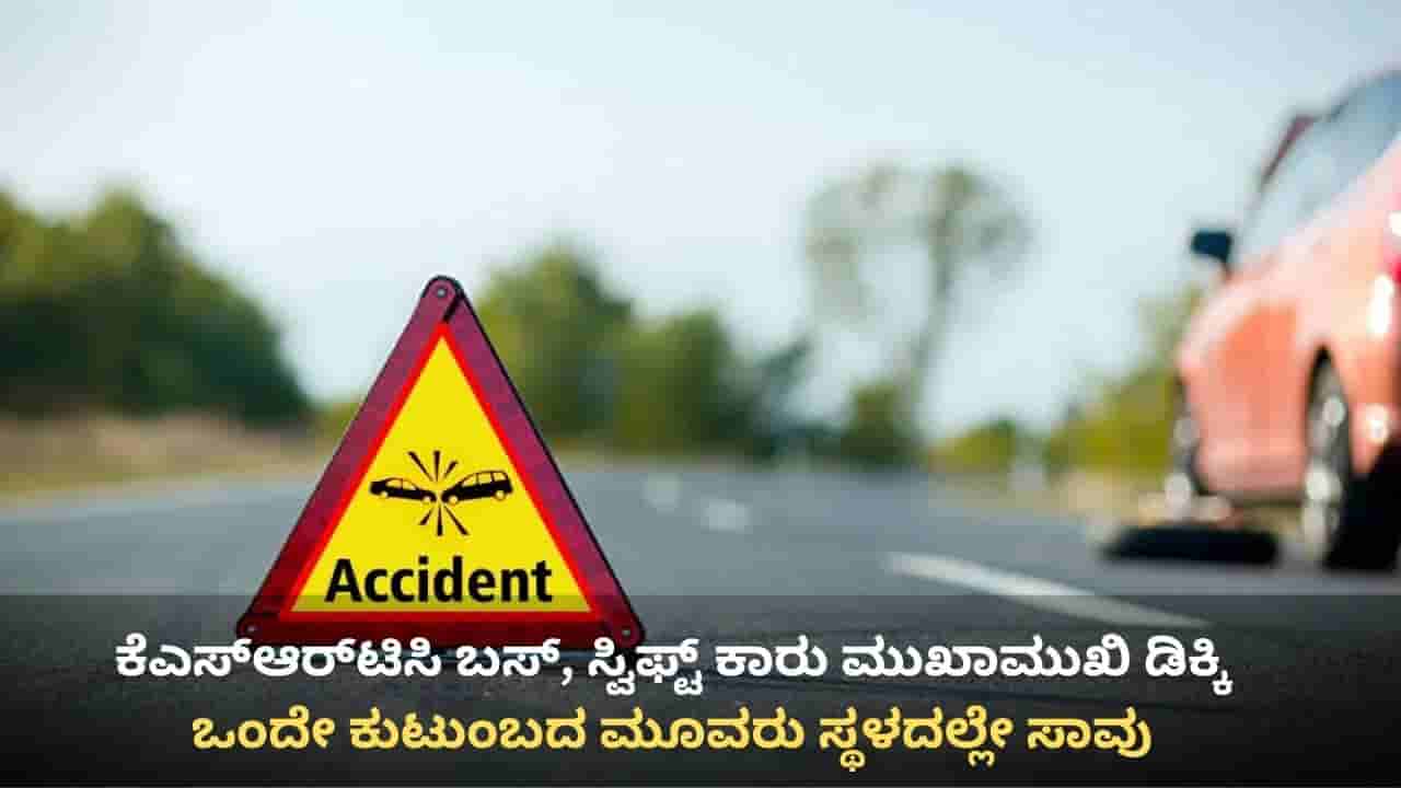 ಶಿವಮೊಗ್ಗ, ಜನವರಿ 14: ಶಿವಮೊಗ್ಗ (Shivamogga) ಜಿಲ್ಲೆಯ ತೀರ್ಥಹಳ್ಳಿ ತಾಲೂಕಿನ ಭಾರತೀಪುರ ಬಳಿ ಸಂಭವಿಸಿದ ಭೀಕರ ಅಪಘಾತದಲ್ಲಿ (Accident) ಒಂದೇ ಕುಟುಂಬದ ಮೂವರು ಮೃತಪಟ್ಟಿದ್ದಾರೆ. ಕೆಎಸ್ಆರ್ಟಿಸಿ ಬಸ್ ಮತ್ತು ಸ್ವಿಫ್ಟ್ ಕಾರು ಮುಖಾಮುಖಿ ಡಿಕ್ಕಿಯಾಗಿ ಕಾರಿನಲ್ಲಿ ಪ್ರಯಾಣಿಸುತ್ತಿದ್ದ ಇಬ್ಬರು ಮಕ್ಕಳು ಸೇರಿದಂತೆ ಮೂವರು ಸ್ಥಳದಲ್ಲೇ ಪ್ರಾಣ ಕಳೆದುಕೊಂಡಿದ್ದಾರೆ. ಮೃತರನ್ನು ರಿಹಾನ್ (15), ರಾಹಿಲ್ (9) ಮತ್ತು ಫಾತಿಮಾ (76) ಎಂದು ಗುರುತಿಸಲಾಗಿದೆ. ಇವರು ಚಿಕ್ಕಮಗಳೂರು ಜಿಲ್ಲೆಯ ಶೃಂಗೇರಿ ಮೂಲದ ನಿವಾಸಿಗಳು ಎಂದು ತಿಳಿದುಬಂದಿದೆ.