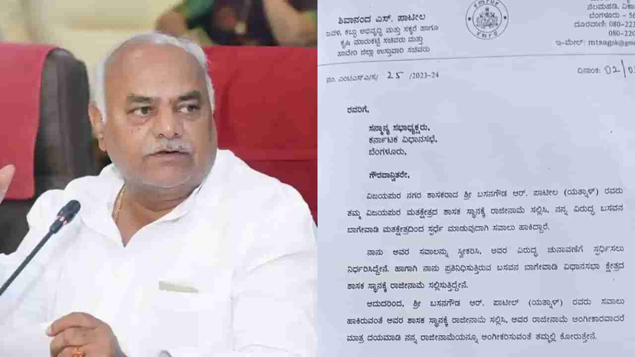 ಯತ್ನಾಳ್ ವಾಗ್ದಾಳಿ ಬೆನ್ನಲ್ಲೇ ಅವರ ಸವಾಲು ಸ್ವೀಕರಿಸುವುದಾಗಿ ಹೇಳಿ ಶಿವಾನಂದ ಪಾಟೀಲ್, ಸ್ಪೀಕರ್ಗೆ ರಾಜೀನಾಮೆ ಪತ್ರ ಕಳುಹಿಸಿದ್ದಾರೆ. ಇದೀಗ ಯತ್ನಾಳ್ ಏನು ಮಾಡಲಿದ್ದಾರೆ ಎಂಬುದನ್ನು ಕಾದುನೋಡಬೇಕಿದೆ.