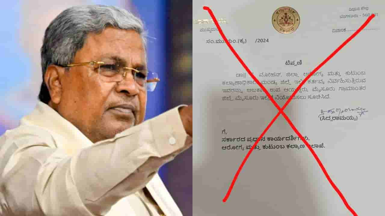 ಬೆಂಗಳೂರು, ಫೆಬ್ರವರಿ 13: ಆರೋಗ್ಯ ಇಲಾಖೆ ಅಧಿಕಾರಿಯನ್ನ ಅಬಕಾರಿ ಇಲಾಖೆಗೆ ವರ್ಗಾವಣೆ (transfer) ಮಾಡ್ಬೇಕೆಂಬ ಸಿಎಂ ಸೂಚನೆ ನೀಡಿದ್ದಾರೆ ಎನ್ನಲಾದ ಪತ್ರ ಸದ್ಯ ರಾಜ್ಯದಲ್ಲಿ ಸಾಕಷ್ಟು ಹಲ್ ಚಲ್ ಎಬ್ಬಿಸಿದೆ. ಮೊದಲೇ ವರ್ಗಾವಣೆ ದಂಧೆಯ ಆರೋಪ ಮಾಡುತ್ತಿದ್ದ ಬಿಜೆಪಿಗೆ ಹೊಸ ಅಸ್ತ್ರವೇ ಸಿಕ್ಕಂತಾಗಿತ್ತು. ಸದ್ಯ ಈ ವಿಚಾರವಾಗಿ ಖದ್ದು ಸಿಎಂ ಸಿದ್ದರಾಮಯ್ಯ (Siddaramaiah) ಸುಳ್ಳು ಆದೇಶ ಪ್ರತಿ ಹರಿಬಿಟ್ಟವರ ವಿರುದ್ಧ ಕಿಡಿಕಾರಿದ್ದಾರೆ.