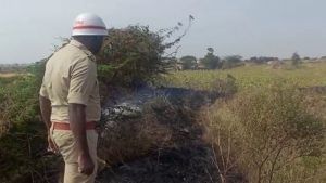 ಜಮೀನಿಗೆ ಬೆಂಕಿ ತಗುಲಿ ಸೂರ್ಯಕಾಂತಿ ಬೆಳೆ ಸಂಪೂರ್ಣ ನಾಶವಾಗಿದೆ
