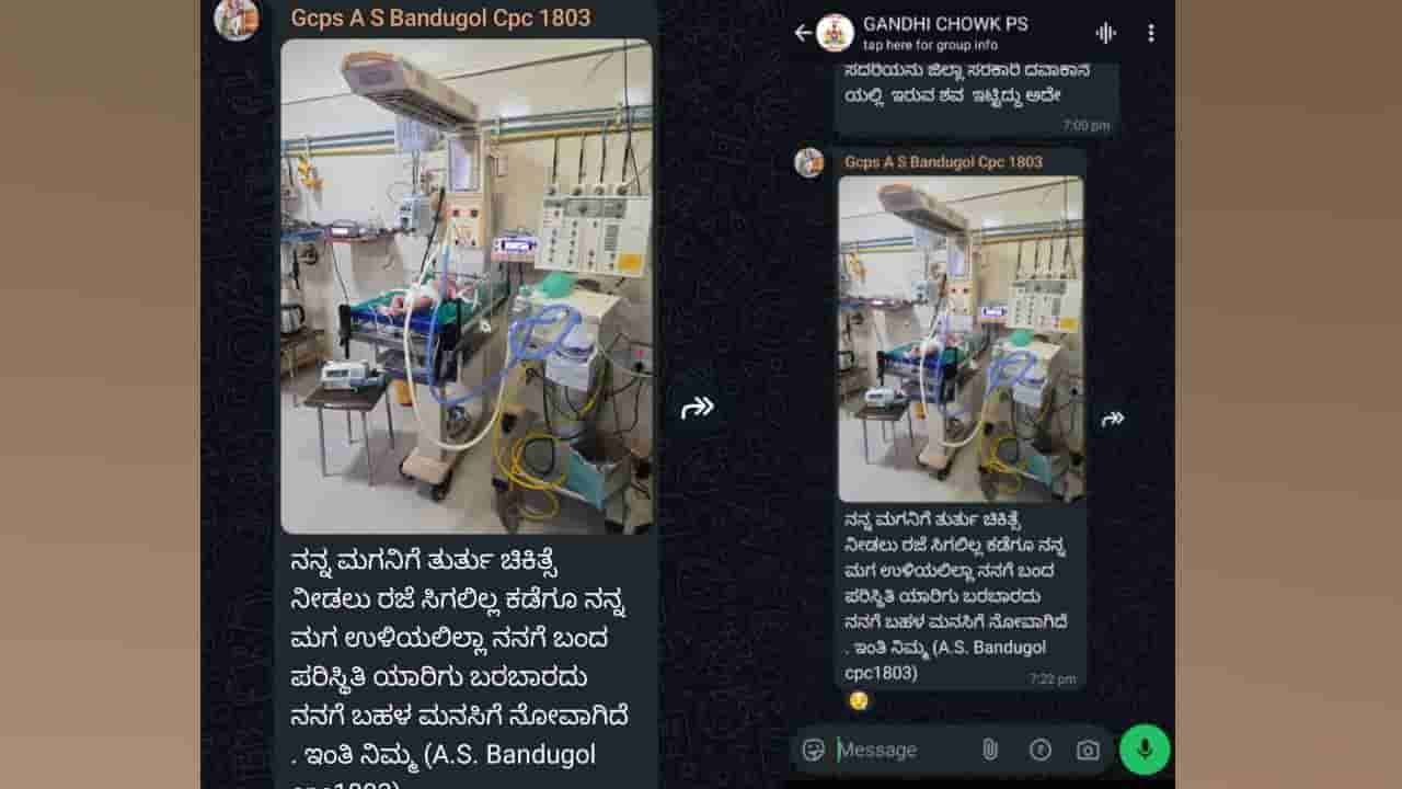ಕಾನ್ಸಸ್ಟೇಬಲ್ ಎಎಸ್ ಬಂಡುಗೋಳ ಅವರ ನವಜಾತ ಶಿಶು ಅನಾರೋಗ್ಯದ ಕಾರಣ ಐಸಿಯುನಲ್ಲಿತ್ತು. ಚಿಕಿತ್ಸೆ ಫಲಕಾರಿಯಾಗದೆ ಮಗು ಮೃತಪಟ್ಟಿದೆ. ಮಗು ಮೃತಪಟ್ಟ ಬಳಿಕ ಎಎಸ್ ಬಂಡುಗೊಳ ಅವರು ಐಸಿಯುನಲ್ಲಿನ ಮಗುವಿನ ಫೋಟೋ ತೆಗೆದು ಪೊಲೀಸ್ ಸಿಬ್ಬಂದಿಗಳ ಗ್ರೂಪ್ನಲ್ಲಿ ಈ ರೀತಿಯಾಗಿ ಬರೆದು ಹಾಕಿದ್ದಾರೆ. ಈ ಘಟನೆಯನ್ನು ಜೊಹೇದ್ ಕಿಂಗ್ ಎಂಬ ಹೆಸರಿನ ಇನ್ಸ್ಟಾಗ್ರಾಮ್ ಖಾತೆಯಲ್ಲಿ ಫೋಸ್ಟ್ ಮಾಡಿ, ಡಿಜಿಪಿ, ಗೃಹ ಸಚಿವ ಜಿ. ಪರಮೇಶ್ವರ್ ಹಾಗೂ ಟಿವಿ9ಗೆ ಟ್ಯಾಗ್ ಮಾಡಲಾಗಿದೆ.