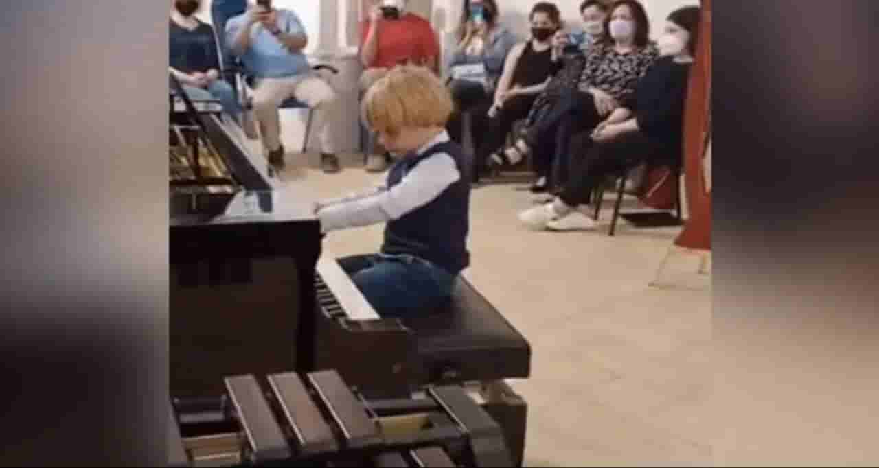 ಇತ್ತೀಚಿಗೆ ಸಾಮಾಜಿಕ ಜಾಲತಾಣದಲ್ಲಿ ಬಾಲ ಪ್ರತಿಭೆಗಳು ಅನಾವರಣಗೊಳ್ಳುತ್ತಿವೆ. ಬಾಲ್ಯದಲ್ಲೇ ಅನೇಕರು ದೊಡ್ಡ ಡೊಡ್ಡ ಸಾಧನೆ ಮಾಡಿರುವುದನ್ನು ನಾವು ನೋಡಿದ್ದೇವೆ ಮತ್ತು ಮುಂದೆ ನೋಡಲಿದ್ದೇವೆ. ಹೀಗೆ ಇಟಲಿಯ (Italy) 5 ವರ್ಷದ ಪೋರ ಮೊಜಾರ್ಟ್ (Mozart) (ಪಿಯಾನೋ) ನುಡಿಸಿ ಜನರ ಮೆಚ್ಚುಗೆ ಪಡೆದಿದ್ದಾನೆ. ಬಾಲಕ ಪಿಯಾನೋ ನುಡಿಸಿದ ವಿಡಿಯೋ ಸಾಮಾಜಿಕ ಜಾಲತಾಣದಲ್ಲಿ ವೈರಲ್ ಆಗಿದೆ. ಈ ವಿಡಿಯೋವನ್ನು ಅನೇಕರು ತಮ್ಮ ಟ್ವಿಟರ್ ಖಾತೆಯಲ್ಲಿ ಹಂಚಿಕೊಂಡಿದ್ದಾರೆ. ಪಿಯಾನೋ ನುಡಿಸಿದ ಬಾಲಕನನ್ನು ಆಲ್ಬರ್ಟೊ ಕಾರ್ಟುಸಿಯಾ ಸಿಂಗೊಲಾನಿ ಎಂದು ಗುರುತಿಸಲಾಗಿದೆ. ಬಾಲಕ ಪಿಯಾನೋ ಬಾರಿಸುತ್ತಿರುವುದನ್ನು ಸುತ್ತಮುತ್ತ ನರೆದಿರುವ ಜನರನ್ನು ತಮ್ಮ ಪೋನ್ಗಳಲ್ಲಿ ಸೆರೆ ಹಿಡಿದಿದ್ದಾರೆ.