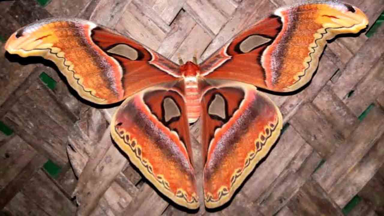 ಪತಂಗದ ವೈಜ್ಞಾನಿಕ ಹೆಸರು ಌಟಕಸ್ ಅಟ್ಲಾಸ್ ಪ್ರಪಂಚದ ಅತ್ಯಂತ ಬೃಹತ್ ಗಾತ್ರದ ಈ ಪತಂಗದ ವೈಜ್ಞಾನಿಕ ಹೆಸರು ಌಟಕಸ್ ಅಟ್ಲಾಸ್ (Attacus Atlas). ಇದರ ರೆಕ್ಕೆಯ ವಿಸ್ತೀರ್ಣ 24 ಸೆ.ಮೀ. ಆಗಿದೆ. ಈ ಪತಂಗ ಪೇರಳೆ, ಸಂಪಿಗೆ ಸೇರಿದಂತೆ ಕೆಲವೊಂದು ಸೀಮಿತ ಮರಗಳ ಎಲೆಗಳಲ್ಲಿ ಮಾತ್ರ ಮೊಟ್ಟೆ ಇಡುತ್ತದೆ.