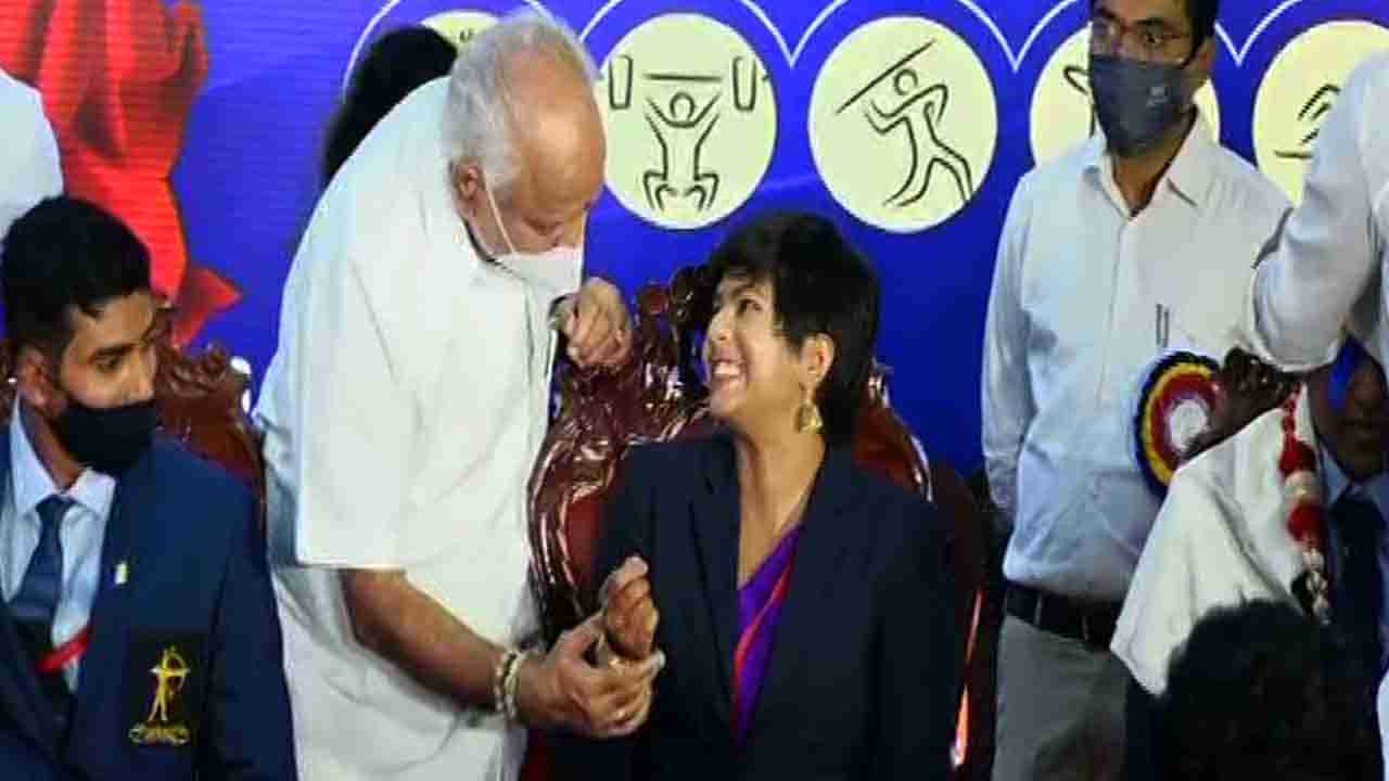 ಇಂದು ವಿಧಾನಸೌಧದ ಬ್ಯಾಂಕ್ವೆಟ್ ಹಾಲ್ನಲ್ಲಿ ಏಕಲವ್ಯ ಪ್ರಶಸ್ತಿ ಪ್ರದಾನ ಕಾರ್ಯಕ್ರಮ ಆಯೋಜಿಸಲಾಗಿತ್ತು. ಈ ವೇಳೆ ವಿಜೇತೆ ಖುಷಿ ದಿನೇಶ್ ತಮ್ಮ ಪ್ರಶಸ್ತಿ ಪಡೆಯಲು ಬಂದಾಗ ಸಿಎಂ ಕಣ್ಣಿಗೆ ಖುಷಿ ಅವರ ಬಳೆ ಸಿಎಂ ಗಮನ ಸೆಳೆದಿದೆ. ಸಮಾರಂಭದಲ್ಲಿ ಖುಷಿ ದಿನೇಶ್ ಕೈ ಹಿಡಿದು ಏನಮ್ಮಾ, ಎಲ್ಲಿ ಮಾಡಿಸಿಕೊಂಡೆ ಈ ಬಳೆಯನ್ನ? ಚಿನ್ನದ್ದಾ? ಎಷ್ಟು ಈ ಬಳೆಯ ಬೆಲೆ? ಎಂದು ವಿಚಾರಿಸಿದ್ದಾರೆ.