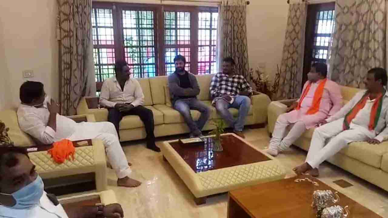 ಬೆಂಗಳೂರು: ಆರ್.ಆರ್.ನಗರದಲ್ಲಿ ಮುನಿರತ್ನ ಪರ ಚುನಾವಣಾ ಪ್ರಚಾರ ನಡೆಸಿದ ನಟ ದರ್ಶನ್, ನಟಿ ಅಮೂಲ್ಯ ಹಾಗೂ ಪಕ್ಷದ ಇತರೆ ರಾಜಕೀಯ ನಾಯಕರಿಗೆ ಕಂದಾಯ ಸಚಿವ ಆರ್ ಅಶೋಕ್ ಮನೆಯಲ್ಲಿ ಭೋಜನದ ವ್ಯವಸ್ಥೆ ಮಾಡಲಾಗಿತ್ತು. ಜಾಲಹಳ್ಳಿ ವಿಲೇಜ್ ಸರ್ಕಲ್ನಲ್ಲಿ ನಟ ದರ್ಶನ್ ಸಾರ್ವಜನಿಕ ಭಾಷಣ ಮುಕ್ತಾಯವಾದ ಬಳಿಕ ಒಂದು ಗಂಟೆಗಳ ಕಾಲ ಭೋಜನ ವಿಶ್ರಾಂತಿ ಪಡೆಯಲಾಗಿದೆ.