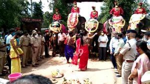 ಅಭಿಮನ್ಯು ನೇತೃತ್ವದ ದಸರಾ ಗಜಪಡೆಗೆ ಸಾಂಪ್ರದಾಯಿಕ ಪೂಜೆ; ಗಜಪಯಣಕ್ಕೆ ಚಾಲನೆ