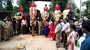 ಮೈಸೂರು: ವಿಶ್ವವಿಖ್ಯಾತ ಮೈಸೂರು ದಸರಾ ಮಹೋತ್ಸವ-2020 ರ ಭಾಗವಾಗಿ ಜಲ್ಲೆಯಲ್ಲಿ ಸಕಲ ಸಿದ್ಧತೆಗಳನ್ನು ಮಾಡಿಕೊಳ್ಳಲಾಗುತ್ತಿದೆ. ಇದರ ಅಂಗವಾಗಿ ಜಿಲ್ಲೆಯ ಹುಣಸೂರು ತಾಲೂಕಿನ ವೀರನಹೊಸಹಳ್ಳಿಯಲ್ಲಿ ಇಂದು ದಸರಾ ಗಜಪಡೆಗೆ ಪೂಜೆ ಸಲ್ಲಿಸಲಾಯಿತು. ಜಿಲ್ಲಾಡಳಿತದಿಂದ ಗಜಪಡೆಗೆ ಸಾಂಪ್ರದಾಯಿಕ ಪೂಜೆ ಸಲ್ಲಿಸಿಲಾಯಿತು.