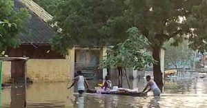 ಆಳೆತ್ತರ ನೀರಿದ್ದರು ತಗ್ಗದ ಭಕ್ತಿ.. ಪ್ರವಾಹದ ನಡುವೆಯೇ ನವರಾತ್ರಿ ಪೂಜೆ