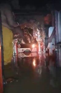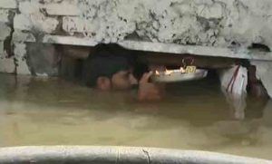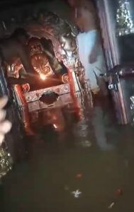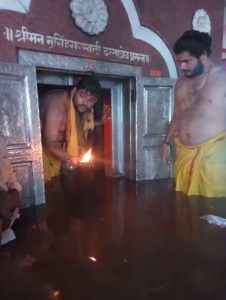 ಪ್ರವಾಹದಲ್ಲೇ ದೇಗುಲದಲ್ಲಿ ಪೂಜೆ ಸಲ್ಲಿಸಿದ ಅರ್ಚಕರು: