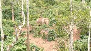 ಕಾಫಿ ತೋಟದ ನಡುವೆ ಎಡಗಾಲಿಗೆ ಏಟು ಆಗಿ ನಡೆಯಲಾರದೆ ಮೂರು ದಿನದ ಹೆಣ್ಣು ಮರಿಯಾನೆಯೊಂದು ಪರದಾಡುತ್ತಿದ್ದ ಮನಕಲುಕುವ ದೃಶ್ಯ ಕಂಡುಬಂತು.