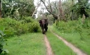 ಅರಣ್ಯ ಇಲಾಖೆ ಸಿಬ್ಬಂದಿ ಜೀಪ್ ಅಟ್ಟಿಸಿಕೊಂಡು ಹೋದ ಕಾಡಾನೆ