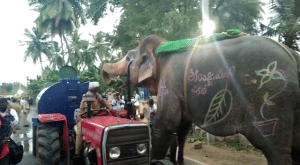 ಇದೇ ವೇಳೆ ಗಜರಾಜನ ಬಳಲಿಕೆಯನ್ನು ಕಂಡ ಆನಂದ್ ಸಿಂಗ್ ಪುತ್ರ ಸಿದ್ದಾರ್ಥ ಸಿಂಗ್ ಟ್ಯಾಕ್ಟರ್ ನಿಲ್ಲಿಸಲು ಚಾಲಕನಿಗೆ ಸೂಚಿಸಿದ್ದಾರೆ. ಶಾಸಕರ ಪುತ್ರನ ಸೂಚನೆ ಮೇರೆಗೆ ಟ್ಯಾಕ್ಟರ್ ಟ್ಯಾಂಕರ್ ಅನ್ನು ಚಾಲಕ ನಿಲ್ಲಿಸಿದ್ದಾನೆ. ಟ್ಯಾಂಕರ್ ನಿಂದ ನೀರು ಕುಡಿದ ಬಳಿಕ ಸಂತೃಪ್ತನಾದ ಗಜರಾಜ ಮೆರವಣಿಗೆಯಲ್ಲಿ ಮುಂದೆ ಸಾಗಿದ..!