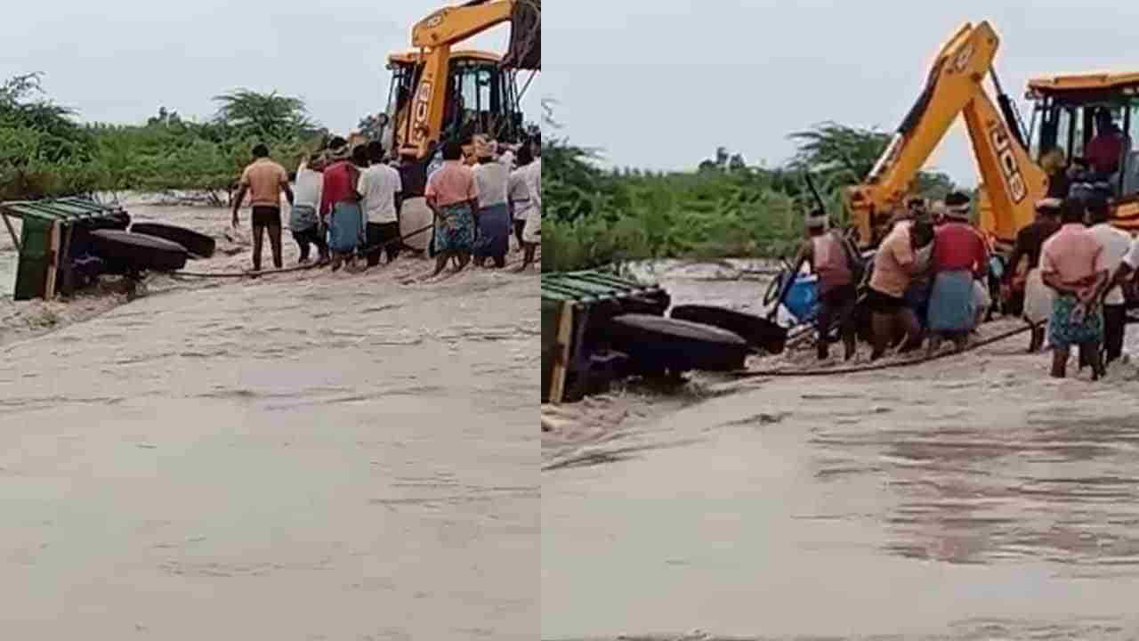 ಕೊಪ್ಪಳ ತಾಲೂಕಿನ ನೆಲೋಗಿಪುರ ಗ್ರಾಮದ ರೈತ ಟ್ರ್ಯಾಕ್ಟರ್ ಓಡಿಸಿಕೊಂಡು ಹೋಗುವಾಗ ಬೈರಾಪುರ ಗ್ರಾಮದ ಬಳಿ ತುಂಬಿ ಹರಿಯುತ್ತಿದ್ದ ಹಳ್ಳದಲ್ಲಿ ಟ್ರ್ಯಾಕ್ಟರ್ ಕೊಚ್ಚಿಕೊಂಡು ಹೋಗಿದೆ. ಪ್ರಾಣದ ಹಂಗು ತೊರೆದು ಜೆಸಿಬಿ ಮೂಲಕ ರೈತರು ಹಳ್ಳದಿಂದ ಟ್ರ್ಯಾಕ್ಟರ್ ಮೇಲೆತ್ತಿದ್ದಾರೆ.