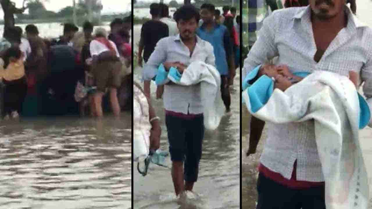 ಭೀಮಾ ನದಿಯ ಹಿನ್ನೀರು ಗ್ರಾಮಕ್ಕೆ ನುಗ್ಗಿ ಜಲಾವೃತಗೊಂಡಿದ್ದ ಹಿನ್ನೆಲೆಯಲ್ಲಿ ಗ್ರಾಮಸ್ಥರನ್ನು ತೆಪ್ಪದ ಮೂಲಕ ಸುರಕ್ಷಿತ ಜಾಗಕ್ಕೆ ಸ್ಥಳಾಂತರ ಮಾಡಲಾಗುತ್ತಿತ್ತು. ಜನರನ್ನು ಸ್ಥಳಾಂತರಿಸುತ್ತಿದ್ದ ವೇಳೆ ತೆಪ್ಪ ಅಲುಗಾಡಿ ತವಕಲ್ ಮತ್ತು ರಜೀಯಾ ದಂಪತಿಯ 15 ದಿನದ ಕಂದಮ್ಮ ನದಿಗೆ ಬಿದ್ದು ಕೊಚ್ಚಿಕೊಂಡು ಹೋಗುತ್ತಿದ್ದ. ಇದನ್ನು ಕಂಡ ಸ್ಥಳೀಯರು ಹಾಗೂ ಮೀನುಗಾರರು ಕೂಡಲೇ ಗಂಡು ಮಗುವಿನ ರಕ್ಷಣೆ ಮಾಡಿದ್ದಾರೆ. ಜೊತೆಗೆ, ರೋಜಾ ಗ್ರಾಮಸ್ಥರನ್ನ ಸುರಕ್ಷಿತ ಜಾಗಕ್ಕೆ ಸ್ಥಳಾಂತರ ಮಾಡಿದ್ದಾರೆ.