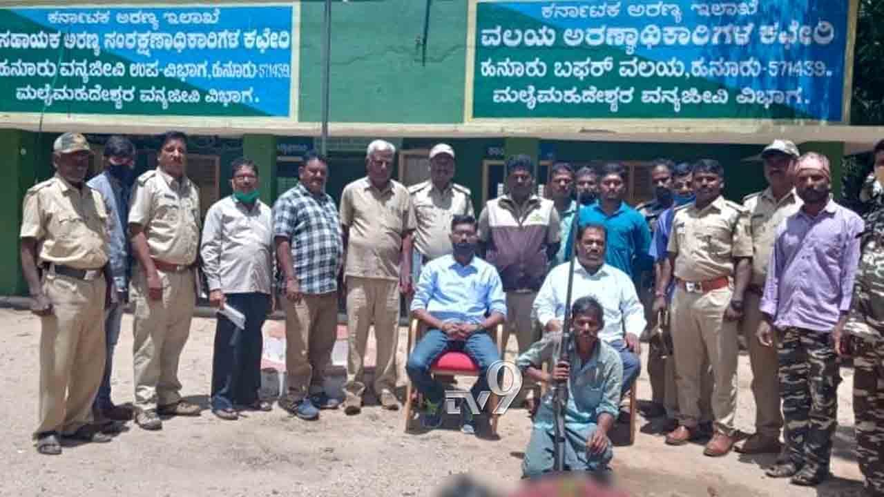 ಮಲೆ ಮಹದೇಶ್ವರ ವನ್ಯಜೀವಿ ವಿಭಾಗದಲ್ಲಿ ಜಿಂಕೆ ಬೇಟೆಯಾಡಿದ್ದ ಬಂಧಿತ ಆರೋಪಿ ಹನೂರು ತಾಲೂಕಿನ ಕಾಂಚಳ್ಳಿ ಗ್ರಾಮದ ನಿವಾಸಿ ಎಂದು ಹೇಳಲಾಗಿದೆ. ಬಂಧಿತನ ಬಳಿ ಒಂದು ನಳಿಕೆಯ ನಾಡ ಬಂದೂಕು, ಮದ್ದು ಗುಂಡು ಹಾಗೂ 20 ಕೆ.ಜಿ ಜಿಂಕೆ ಮಾಂಸವನ್ನು ಅರಣ್ಯ ಇಲಾಖೆ ಸಿಬ್ಬಂದಿ ವಶಕ್ಕೆ ಪಡೆದಿದ್ದಾರೆ.