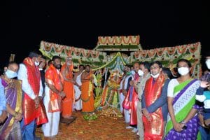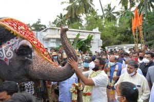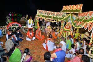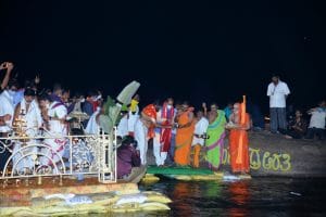 ವಿವಿಧ ರೀತಿಯ ಧಾರ್ಮಿಕ ಆಚರಣೆಗಳ ಮೂಲಕ ಒಂದು ಗಂಟೆಗೂ ಹೆಚ್ಚು ಕಾಲ ತುಂಗಾಭದ್ರ ನದಿ ಮತ್ತು ಭುವನೇಶ್ವರಿ ದೇವಿಗೆ ವಿಶೇಷವಾದ ಪೂಜೆ ಸಲ್ಲಿಸಲಾಯಿತು.
