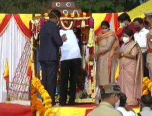 ರಾಜ್ಯೋತ್ಸವದ ಸಂಭ್ರಮಾಚರಣೆ ಅಂಗವಾಗಿ ನಗರದ ಸಿಪಿಎಡ್ ಮೈದಾನದಲ್ಲಿ ಜಿಲ್ಲಾಡಳಿತದಿಂದ ಕಾರ್ಯಕ್ರಮ ಏರ್ಪಾಟು ಮಾಡಲಾಯಿತು. ಜಿಲ್ಲಾ ಉಸ್ತುವಾರಿ ಸಚಿವ ರಮೇಶ್ ಜಾರಕಿಹೊಳಿ ಭುವನೇಶ್ವರಿ ದೇವಿಗೆ ಪೂಜೆ ಸಲ್ಲಿಸಿದರು. ನಂತರ ಧ್ವಜಾರೋಹಣ ನೆರವೇರಿಸಿದ ಸಚಿವರು ವಿವಿಧ ಪಥಸಂಚಲಗಳ ಪರಿವೀಕ್ಷಣೆ ಸಹ ಮಾಡಿದರು.