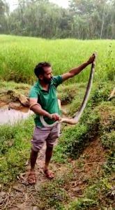 ಕೊಡಗು: ದನದ ಕೊಟ್ಟಿಗೆ ಬಳಿ ನಾಗರಾಜ ಪ್ರತ್ಯಕ್ಷನಾಗಿದ್ದ. ಸುಮಾರು 6 ಅಡಿ ಉದ್ದದ ನಾಗರಹಾವು ಕಂಡು ಸುತ್ತಮುತ್ತ ನಿವಾಸಿಗಳಲ್ಲಿ ಆತಂಕ ಮನೆ ಮಾಡಿತ್ತು. ಬಳಿಕ, ಉರಗ ತಜ್ಞ ಪಿಯೂಶ್ ಪೆರೇರರಿಂದ ನಾಗರಹಾವು ರಕ್ಷಣೆ ಮಾಡಲಾಗಿದೆ. ಮಡಿಕೇರಿ ತಾಲೂಕಿನ ಮೇಕೇರಿ ಅರ್ವತೊಕ್ಲು ಗ್ರಾಮದ ತೆನ್ನೀರ ಗಣೇಶ್ ಮನೆ ಸಮೀಪ ಈ ಹಾವು ಪ್ರತ್ಯಕ್ಷವಾಗಿತ್ತು.