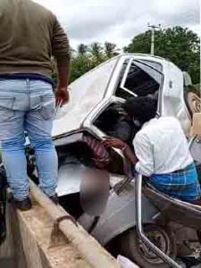 ಮಾರುತಿ ಕಾರ್ ಪಲ್ಟಿ: ಸ್ಥಳದಲ್ಲೇ ಇಬ್ಬರ ಸಾವು, ಐವರು ಗಂಭೀರ