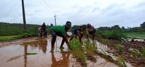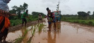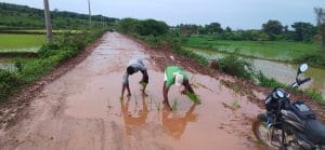 ಕಿತ್ತು ಹೋದ ರಸ್ತೆಯಲ್ಲಿ ಭತ್ತ ನಾಟಿ..