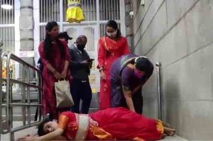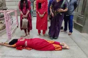ಗೆಲುವಿಗಾಗಿ ಉರುಳು ಸೇವೆ: ರಾಜರಾಜೇಶ್ವರಿಯ ಸನ್ನಿಧಾನದಲ್ಲಿ ‘ಕೈ’ ಅಭ್ಯರ್ಥಿ ಕುಸುಮಾ ಪ್ರಾರ್ಥನೆ