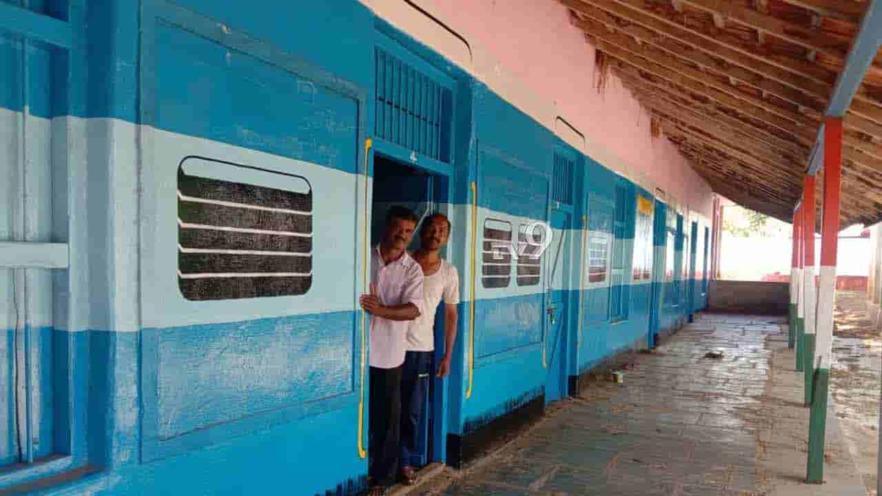 ಶಾಲೆ ಜಾಗದಲ್ಲಿ ನೀಲಿ ಬಣ್ಣದ ರೈಲು: