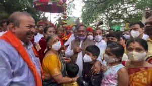 ದೇವರಿಗೆ ಮೊದಲು ಪ್ರಾರ್ಥನೆ ಸಲ್ಲಿಸಿದ ಸಚಿವರು ನಂತರ ಮೆರವಣಿಗೆಗೆ ಚಾಲನೆ ನೀಡಿದರು. ದಸರಾ ಮೆರವಣಿಗೆಯಲ್ಲಿ 3 ಆನೆಗಳು ಪಾಲ್ಗೊಂಡವು. ಆನೆಗಳಿಗೆ ಪುಷ್ಪವೃಷ್ಟಿಯ ಮೂಲಕ ಅದ್ಧೂರಿ ಸ್ವಾಗತ ಕೋರಲಾಯಿತು.