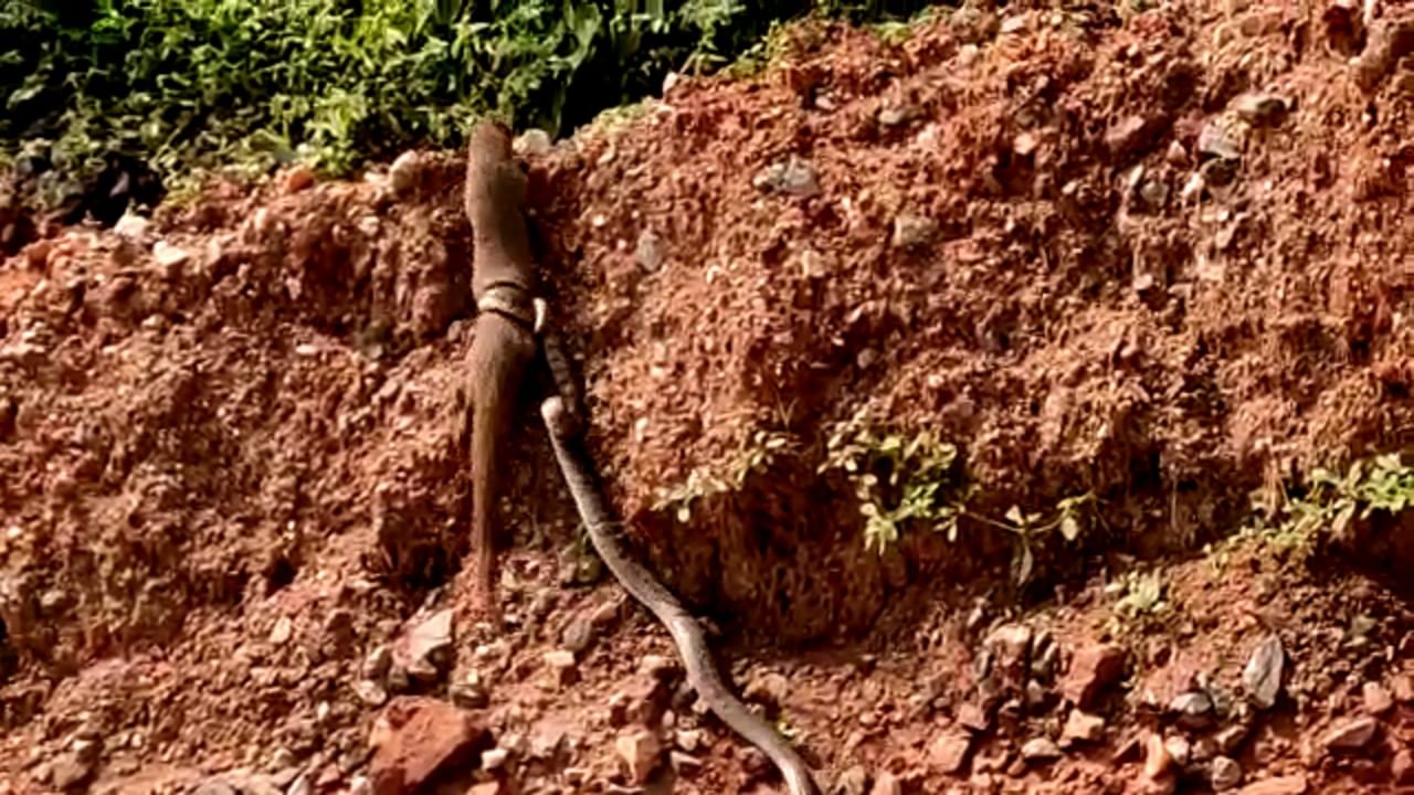 ಹಾವಿನ ಬಿಗಿತಕ್ಕೆ ಒದ್ದಾಡಿದ ಮುಂಗುಸಿ ಪಲಾಯನ ಮಾಡಿತು!
