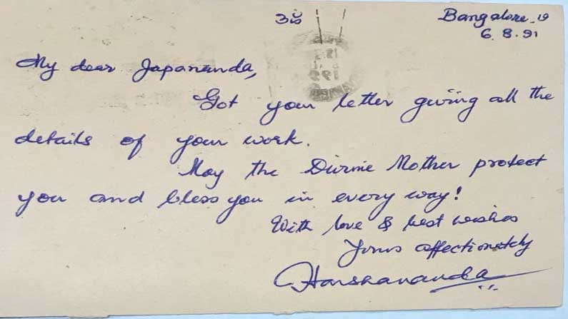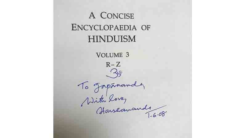 ಸ್ವಾಮಿ ಹರ್ಷಾನಂದರ ಹಸ್ತಾಕ್ಷರವಿರುವ ಪುಸ್ತಕ