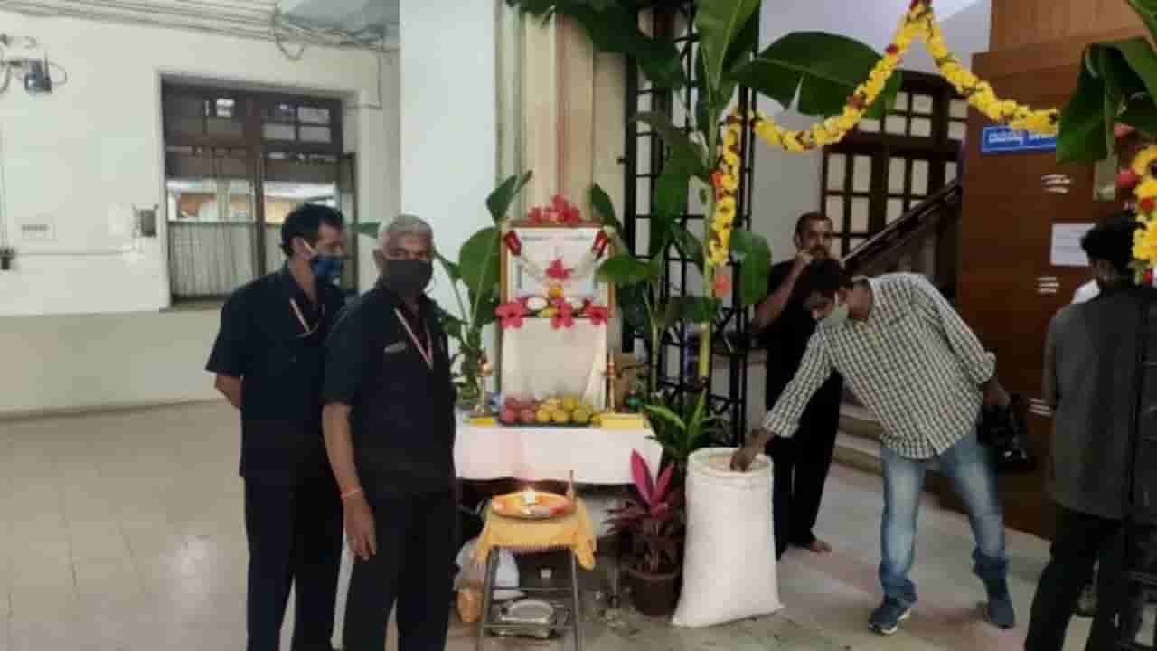 ಬೆಂಗಳೂರು: ರಾಜ್ಯದ ಶಕ್ತಿ ಕೇಂದ್ರಗಳಾದ ವಿಧಾನ ಸೌಧ ಮತ್ತು ವಿಕಾಸ ಸೌಧದಲ್ಲಿ ಆಯುಧ ಪೂಜೆಯ ಸಂಭ್ರಮ ಇಂದು ಮನೆಮಾಡಿತ್ತು. ನಾಳೆ ರಜೆಯಿರುವ ಹಿನ್ನೆಲೆಯಲ್ಲಿ ಸಿಬ್ಬಂದಿ ಇಂದೇ ಪೂಜೆ ಸಲ್ಲಿಸಿದರು.