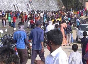 ಹಲವು ತಿಂಗಳು ಮನೆಯಲ್ಲೇ ಕುಳಿತು ಬೇಜಾರಾಗಿ ಪ್ರವಾಸಿ ತಾಣದತ್ತ ಮುಖ ಮಾಡಿರುವ ಪ್ರವಾಸಿಪ್ರವಾಸಿಗರಿಂದ ಆತಂಕ ಎದುರಾಗಿದೆ. ಕೊರೊನಾವನ್ನು ಸಂಪೂರ್ಣ ಮರೆತಂತೆ ಪ್ರವಾಸಿಗರು ವರ್ತಿಸುತ್ತಿದ್ದಾರೆ. ಚಿಕ್ಕಬಳ್ಳಾಪುರ ಜಿಲ್ಲೆಯ ಶ್ರೀನಿವಾಸ ಸಾಗರ ಜಲಾಶಯದಲ್ಲಿ 80 ಅಡಿ ಎತ್ತರದಿಂದ ಬೀಳುವ ನೀರಿಗೆ ಮೈಯೊಡ್ಡಿ ಪ್ರವಾಸಿಗರು ಯಾವುದೇ ಅಂತರ ಇಲ್ಲದೆ ಒಬ್ಬರ ಮೇಲೆ ಒಬ್ಬರು ಬಿದ್ದುಕೊಂಡು ನೀರಿನಲ್ಲಿ ಆಟವಾಡಿ ಮೋಜು ಮಸ್ತಿ ಮಾಡುತ್ತಿದ್ದಾರೆ.