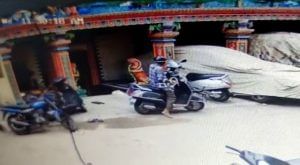 ದೇವಸ್ಥಾನದ ಒಳಗೆ ಪೂಜೆಯಲ್ಲಿ ನಿರತರಾಗಿದ್ದ ಮಹಿಳೆಯ ಸ್ಕೂಟರ್ ಕೀ ಯನ್ನು ಎಗರಿಸಿದ ಕಳ್ಳ ಹೊರಗೆ ನಿಲ್ಲಿಸಿದ ಸ್ಕೂಟರ್ ಕದ್ದು ಪರಾರಿಯಾಗಿದ್ದಾನೆ. ಪೂಜೆ ಮುಗಿಸಿ ಹೊರಬಂದ ಮಹಿಳೆಗೆ ತನ್ನ ಸ್ಕೂಟರ್ ಕಾಣದೇ ಹೋದಾಗ, ದೇವಸ್ಥಾನದ ಎದುರಿಗಿರುವ ಅಂಗಡಿಯ ಸಿಸಿಟಿವಿ ದೃಶ್ಯಾವಳಿಯನ್ನು ಪರಿಶೀಲಿಸಿದ ವೇಳೆ ಕಳ್ಳನ ಕರಾಮತ್ತು ತಿಳಿದಿದೆ.