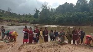 ವಾರದ ಹಿಂದೆ ಹೇಮಾವತಿ ನದಿ ನೀರು ಉಕ್ಕಿ ಹರಿದಿದ್ದರಿಂದ ಗದ್ದೆಗಳು ಜಲಾವೃತಗೊಂಡಿದ್ದವು. ಮಲೆನಾಡು ಭಾಗದಲ್ಲಿ ಮಳೆಯ ಆರ್ಭಟ ಕಡಿಮೆಯಾಗಿರುವುದರಿಂದ ನದಿ ನೀರಿನ ಪ್ರಮಾಣವು ಇಳಿಕೆಯಾಗಿದೆ. ನದಿ ನೀರಿನ ಮಟ್ಟ ತಗ್ಗಿದ್ದರಿಂದ ಮಹಿಳೆಯರು ಹೇಮಾವತಿ ನದಿಗೆ ಇಳಿದು ಗೌರಿಯನ್ನು ಕಳುಹಿಸಿಕೊಟ್ಟರು. ಒಂದು ವಾರದ ಹಿಂದೆಯಷ್ಟೇ ಪ್ರವಾಹದ ಭೀತಿ ಹುಟ್ಟಿಸಿದ ಹೇಮೆಯಲ್ಲಿ ಗೌರಿ ಪಯಣಿಸೊದನ್ನ ಕಂಡು ಮಹಿಳೆಯರು ಖುಷಿಪಟ್ಟರು.