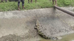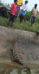 ನೀರಾವರಿ ಕಾಲುವೆಯಲ್ಲಿ ಮೊಸಳೆ ಪ್ರತ್ಯಕ್ಷ, ಯುವಕರೇ ಹಿಡಿದು ನದಿಗೆ ಬಿಟ್ರು